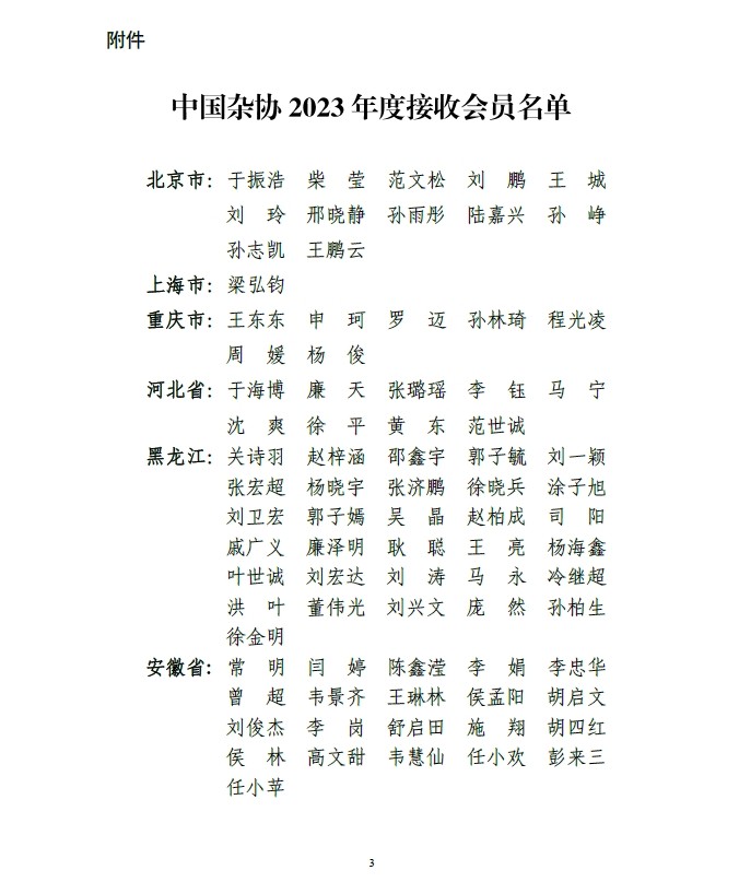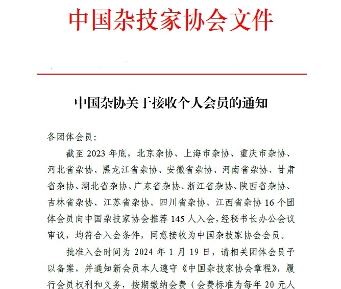 中国杂协关于接收个人会员的通知